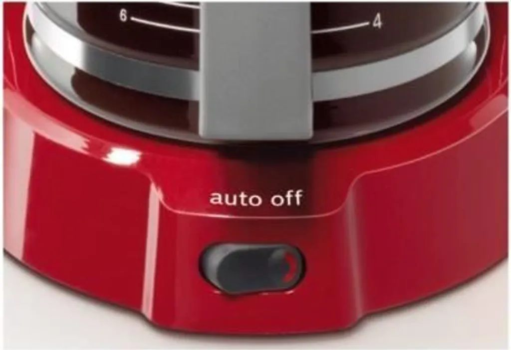 Integrierter Wassertank mit Wasserstandsanzeige, außen ablesbar Warmhalteplatte AutoOff: Automatische Abschaltung SafeStorage zur leichten und sicheren Aufbewahrung: Kannengriff, Kabel und Stecker verschwinden im Inneren der Kaffeemaschine Ein- / Ausschalter mit Kontrollleuchte Farbe: Rot