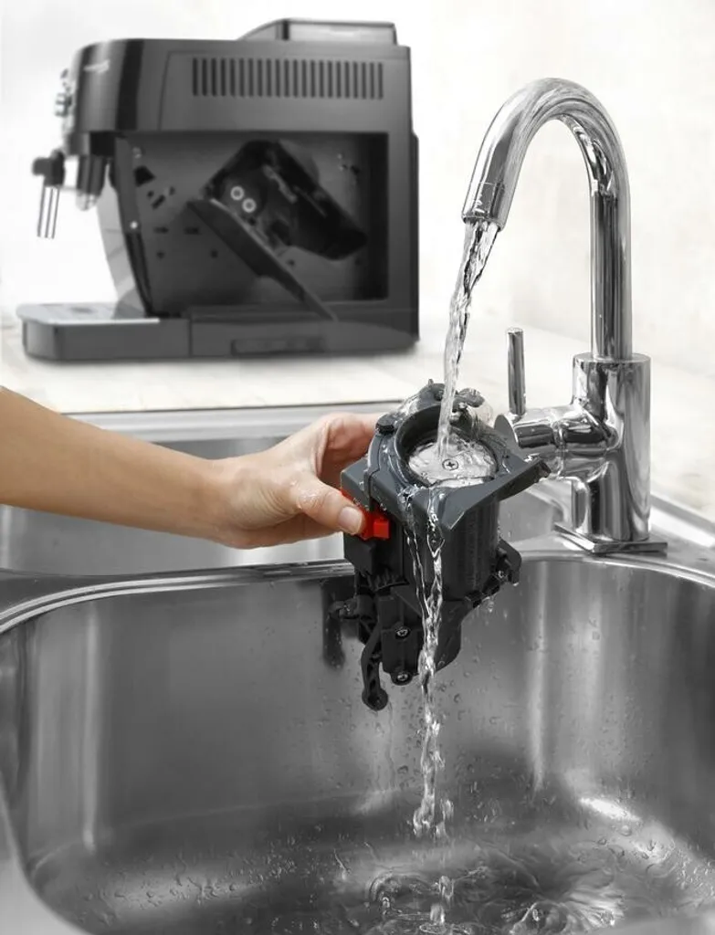 - Herausnehmbare wartungsarme BrĂŒhgruppe: einfach und hygienisch zu reinigen