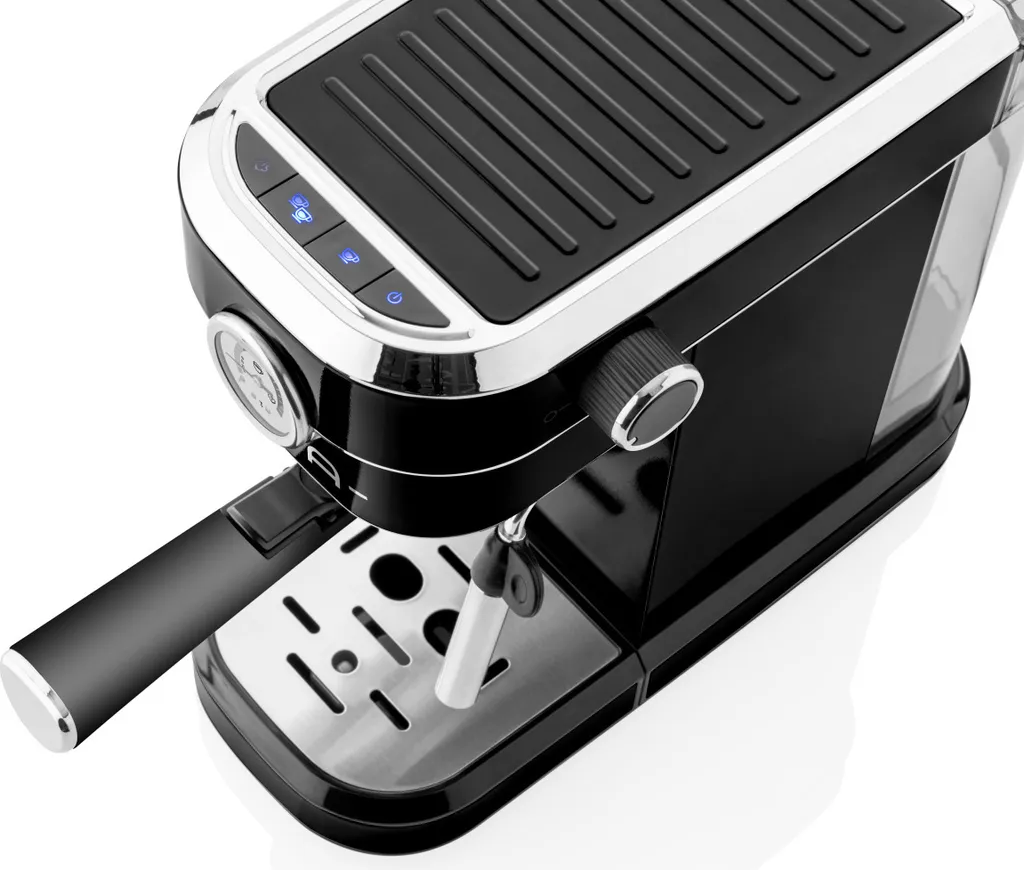 Ein Druck der Tasten ist mit der Lichtsignalisierung begleitet. Im Hinterteil befindet sich ein entnehmbarer transparenter Wassertank. Die Überdruck- und Thermosicherung sorgen für die sichere Benutzung. Ein Thermometer an der Front der Espressomaschine zeigt die aktuelle Wassertemperatur im Heizsystem an und zugleich dient als effektives Designelement.