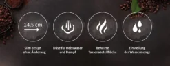 Dank der Breite 14,5 cm ist die Espressomaschine sehr raumsparend. Die Edelstahlausführung sorgt für ihre Widerstandsfähigkeit und die automatische Ausschaltung nach 25 Minuten sorgt für Energieersparnis.