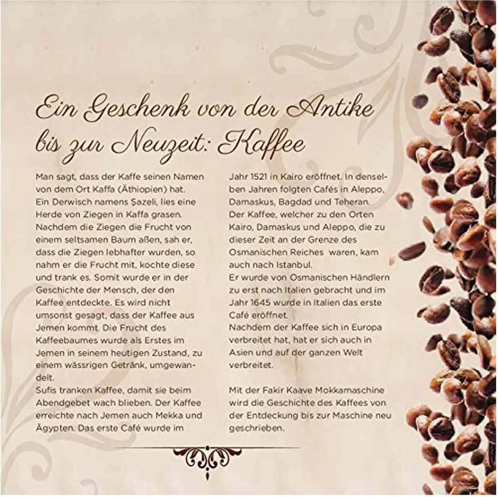 - Die Fakir Kaave Mokkamaschine bereitet Ihren Mokka zu, wir man es bereitsseit dem 15. Jahrhundert in den türkischen Kulturen praktiziert.