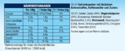 - Zutaten: Zucker (44%), Magermilchpulver (20%), Glukosesirup, Palmkernöl, löslicher Bohnenkaffee (7,4%), Milcheiweiß, Säureregulator (E340), Aroma, Verdickungsmittel (E415), Emulgator (E481), Trennmittel (E551)