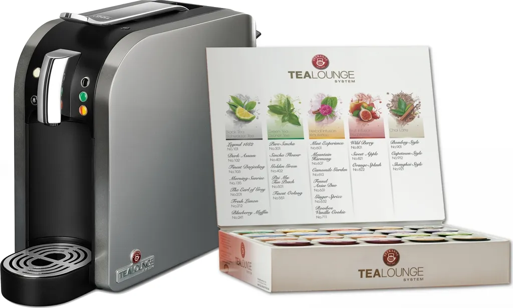 Die neuartige Maschine des TEEKANNE TEALOUNGE Systems wurde speziell von den Experten von Teekanne, K-fee und einem fĂĽhrenden Schweizer Maschinenhersteller fĂĽr die Zubereitung von Tee entwickelt.